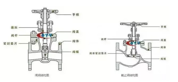 截止閥的密封面是閥心的一個小梯形側(cè)面(具體看閥心的形狀),一旦閥心脫落,相當于閥門關閉(如果壓差大,當然關不嚴,不過止逆效果還不錯),閘閥是靠閥心閘板的側(cè)面來密封,密封效果不如截止閥,閥心脫落也不會像截止閥那樣相當于閥門關閉。